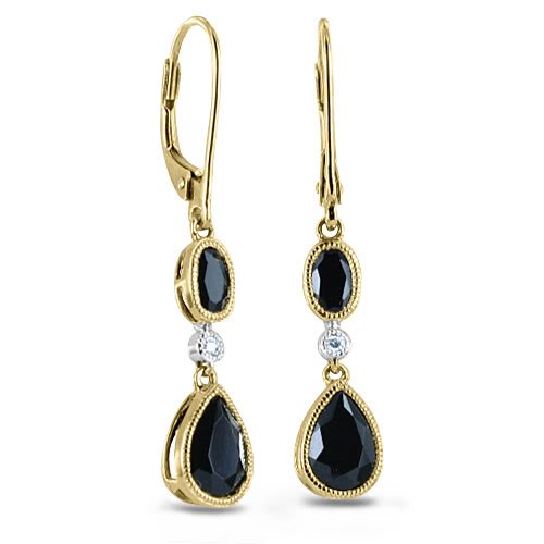 Fire up your style with these gorgeous natural Onyx and Diamond drop earrings!!!These beautiful diamond and Onyx earrings are crafted in gleaming 14k yellow gold bezel setting with delicate milgrain detailing along the edges. What an intricate design for style and glamour! The stunning contract of rich black and lustrous yellow - with sparkling icy white diamonds as accented point. The fabulous pear shaped onyx dangles gorgeously. The height of the earring is 32mm and the width is 5mm..../ 14k Yellow Gold Natural Diamond and Onyx Drop Earrings - 1.60 cttw / Yellow Fashion