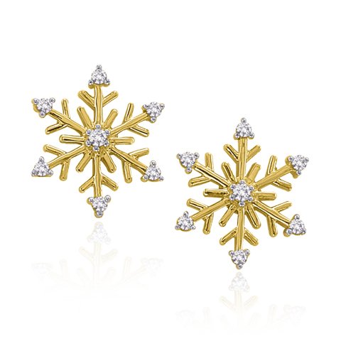14K Yellow Gold 0.12 ct. Diamond ''Snow Flake'' Earrings