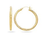 These exquisite Gold Diamond-cut Hoop Earrings are exquisitely crafted in 14K Yellow Gold. Approximate Gold Weight: 3.10 Grams. The earrings come finished with omega backs. Surprise her with these dazzling earrings.,METAL:14K Gold,ACTUAL METAL:14K Yellow Gold,BACKING:Omega Backs,COLOR:Yellow,GENDER:Womens,PRODUCT TYPE:Hoop Earrings,MATERIAL:Others.../ Diamond-cut Hoop Earrings in 14K Yellow Gold / Yellow Fashion