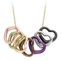 This stunning necklace features hearts that are finished with multi-colored gold, rhodium, black ruthenium and purple titanium and set on a 14K yellow gold chain for a design that captures the colors of the season..../ Multi-Colored Heart Necklace in 14K Yellow Gold / Yellow Fashion